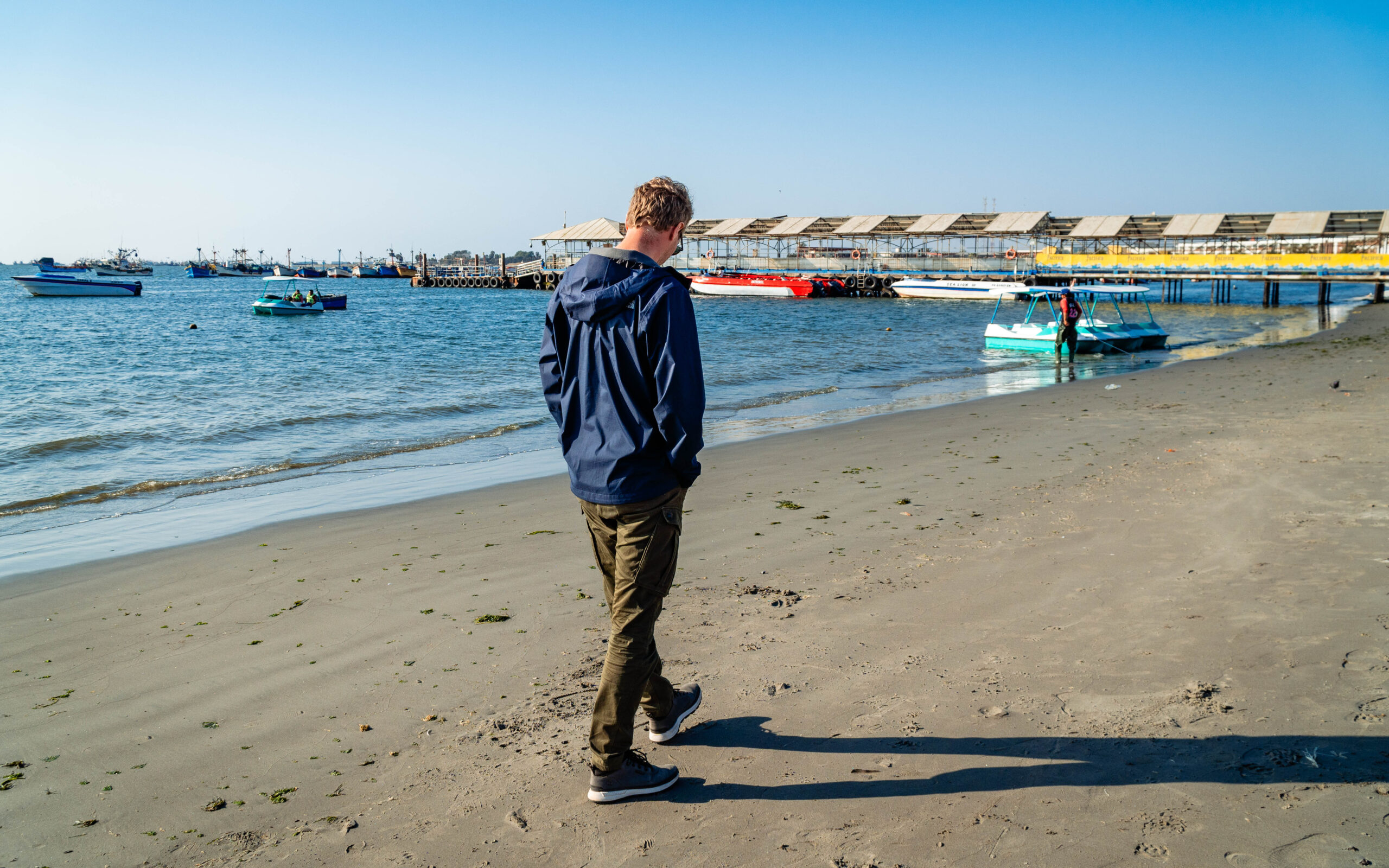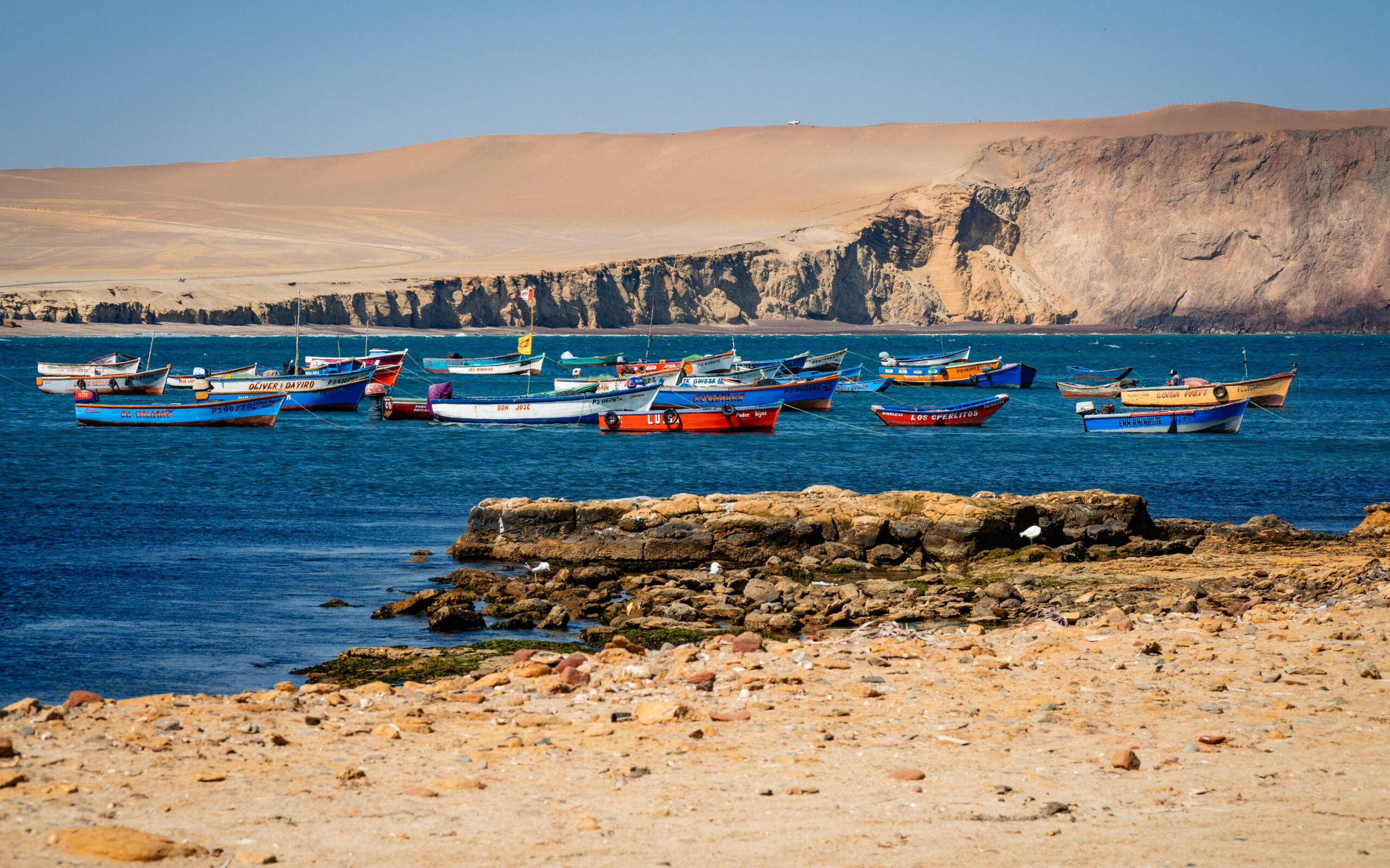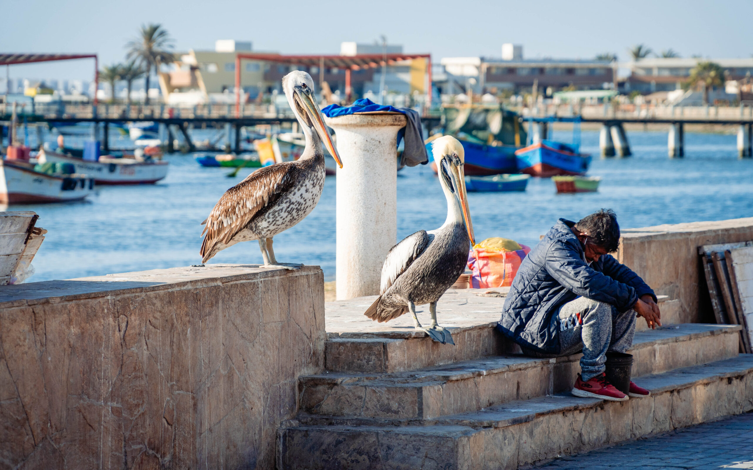 W samym Paracas warto się zatrzymać na spacer, skąd można obserwować kolorowe łódki rybackie i czujnie wypatrujące ryby pelikany.